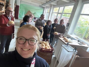 Weiter ging die Reise nach Bremen, wo uns Nina Hankewitz-Brandes die Türen zur „Croll & Dennecke GmbH“ öffnete, ein Unternehmen, das seit 1897 in 4. Generation Naturschwämme verarbeitet. Die VorbildUnternehmerin ist Role-Model des Bundeswirtschaftsministeriums und hat uns in die Firmengeheimnisse eintauchen lassen. Die Schwämme kommen aus der ganzen Welt, aus der Karibik wie aus dem Mittelmeer. Sie werden hier gereinigt und geschnitten und dann weltweit vermarktet. Dem Unternehmen ist es gelungen, in Deutschland alle anderen Wettbewerber vom Markt zu verdrängen und doch ist zu spüren, dass in Zeiten wie diesen, in denen nur noch drei Drogerieläden den Markt in Deutschland bestimmen, auch heute wieder eine Herausforderung ansteht, im Markt zu bestehen. Ist dieser doch inzwischen von den bunten Plastikschwämmen überschämmt. neue Wege zu gehen sind. Wir waren fasziniert und haben gleich einen ganzen „Think Tank“ an Ideen für die weitere Vermarktung hinterlassen.
